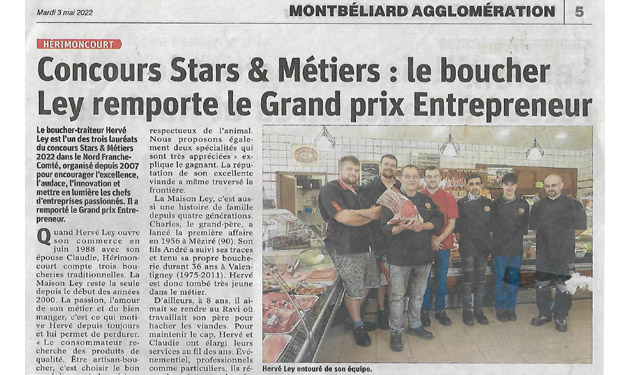 La maison LEY Boucherie - Charcuterie - Traiteur - Fromagerie est à votre service depuis 1988. Implantée sur Hérimoncourt dans le département du DOUBS depuis 4 générations : Charles l’arrière grand père, André le grand père, Hervé le papa et Aurélien le fils.